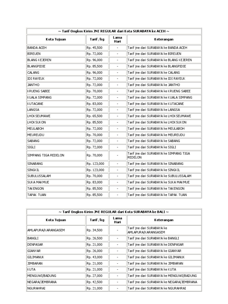 Tarif Ongkos Kirim Jne Regular Dari Kota Surabaya Ke Aceh
